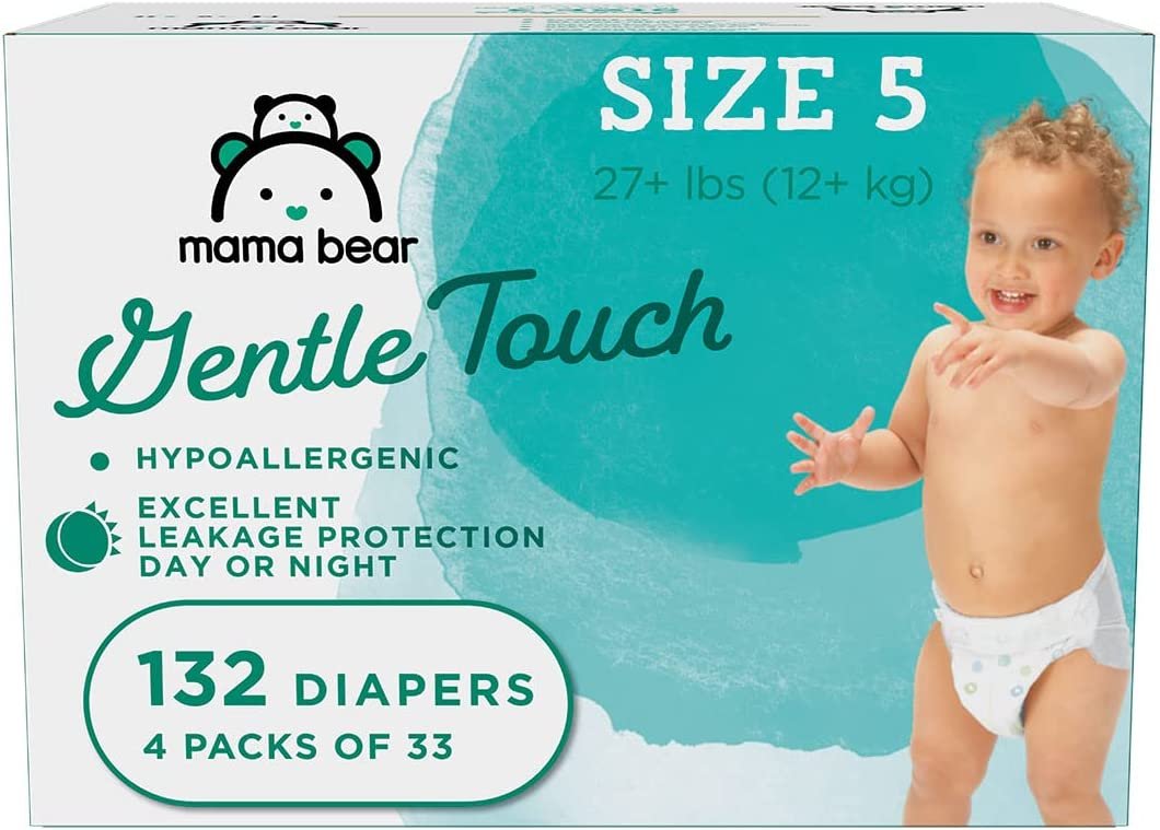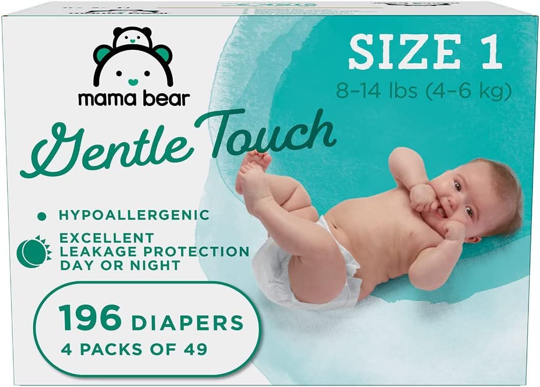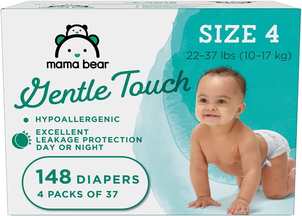 Amazon Brand – Mama Bear Gentle Touch Diapers, Hypoallergenic, Size 4, 148 Count (4 packs of 37)