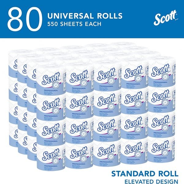 Scott® Professional Standard Roll Toilet Paper (04460), with Elevated Design, 2-Ply, White, Individually wrapped rolls, (550 Sheets/Roll, 80 Rolls/Case, 44,000 Sheets/Case)