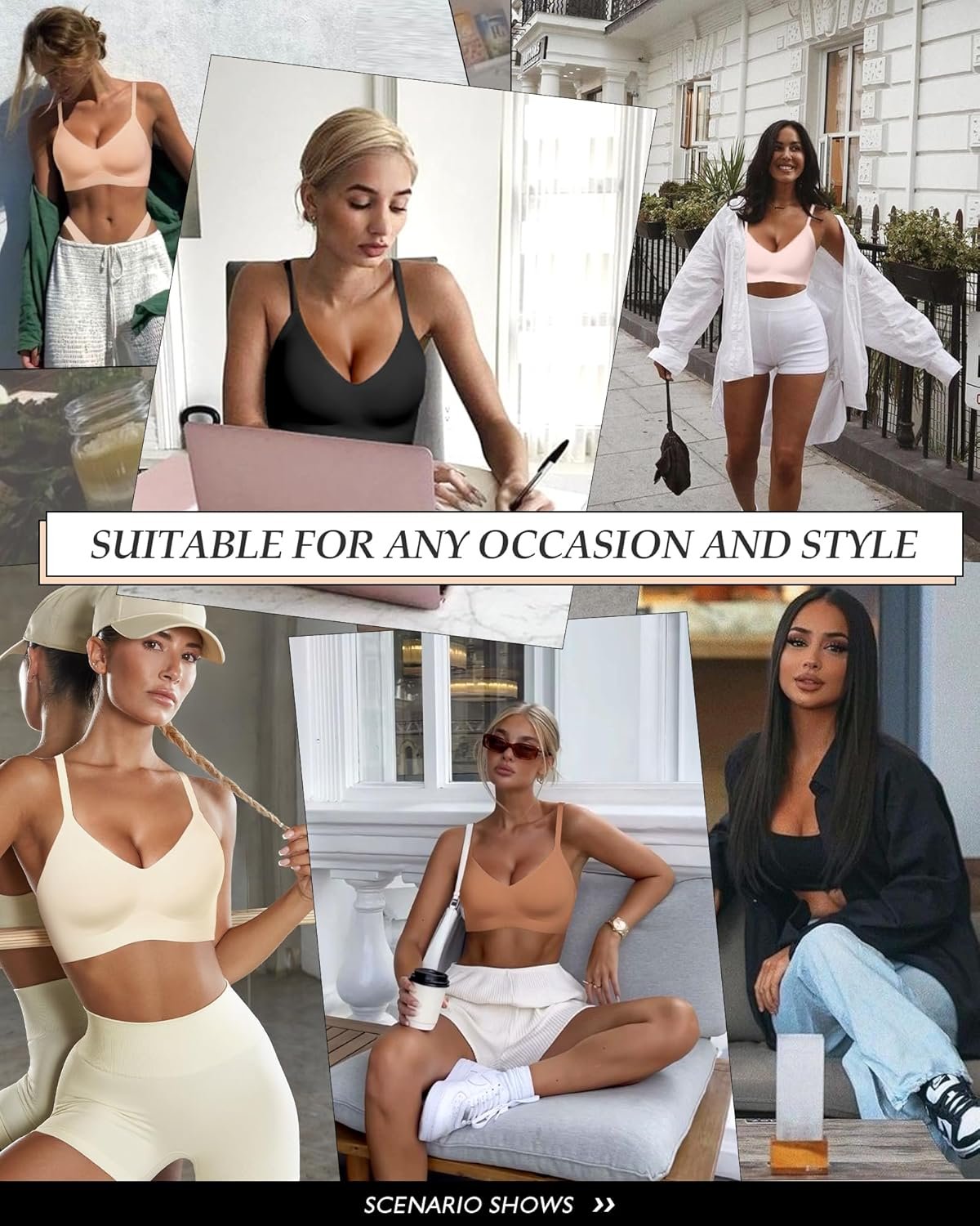 - 【Unique Design and Tips】Chest Deep V, Adjustable back design with U-shape or X-shape options, Smoothing Seamless Edges, Hands-free pullover design, The removable pads, W Shape 360°Jelly Strips Support, Adjustable Wide Shoulder Straps, reduced shoulder pressure. Side widening and supporting, which does not compress the breasts, while it shows your attractive breast ditch and clavicle.We recommend hand washing. or recommend using a machine wash bag when machine washing your bralettes.